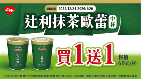 2025/12/24-2026/01/20 十利抹茶歐蕾 任選買一送一!
